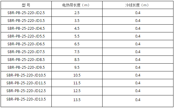 标称功率(W/m,10℃):15、25、30