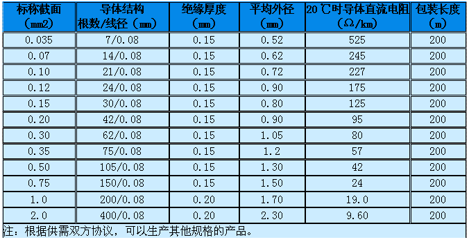 特点/用途:具有优良的耐腐蚀性能,抗油、强酸、抗强碱、强氧化剂等;具有优良的电绝缘性能、耐高电压、高频损耗小、不吸潮、绝缘电阻大;具有优良的耐燃、耐老化性能、使用寿命长。电子行业中,可用于温度补偿导线,耐低温导线,高温加热导线,耐老化电线及阻燃电线;家用电器行业中,可用于空调机,微波炉,电子消毒柜,电饭堡,电子热水瓶,电暖器,电烤箱,电炒锅,灯具灯饰等的内部布线。交货要求:按双方合同协议商定,允许不小于10米的短段交货。其数量应不超过交货总长度的10%规格结构及技术参数: